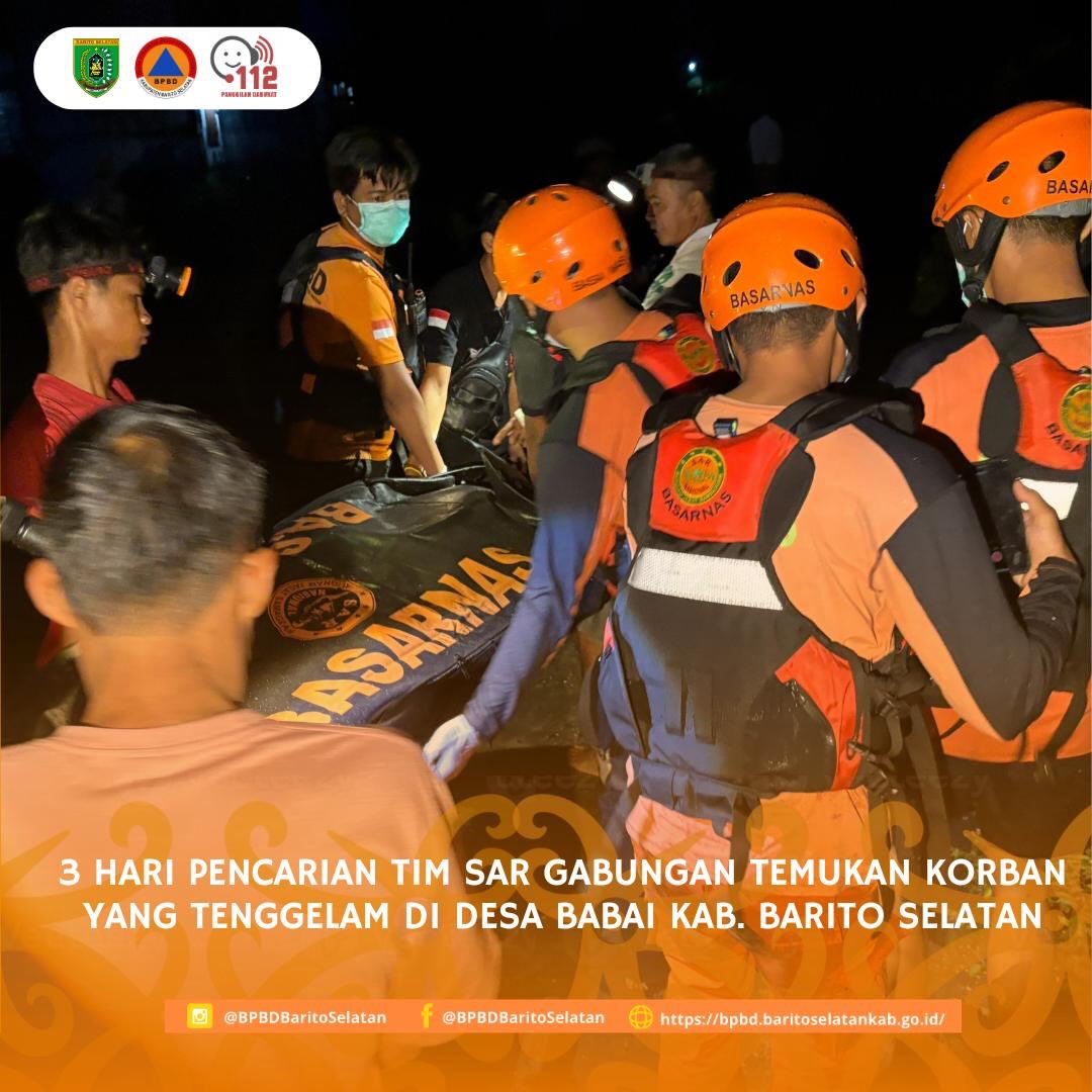 Peristiwa tersebut kemudian dilaporkan kepada pihak Badan Penanggulangan Bencana Daerah (BPBD) Kab. Barito Selatan untuk dilakukan upaya pencarian dan pertolongan.